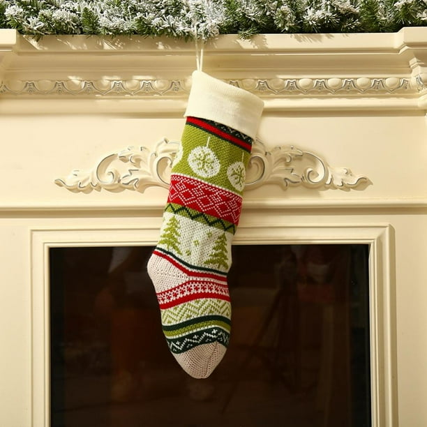 Personalized Knitted Christmas Stockings Green White Red Intarsia Fair Stocking Factory